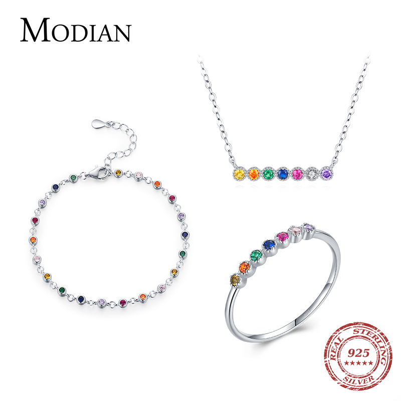 Modian Rainbow Zirconia Jewelry Set 925 Sterling Silver Colorful Earrings & Necklaces Pendant For Women Wedding Jewelry 6