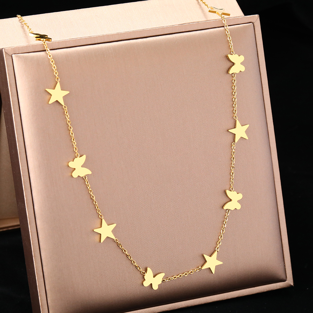 Stainless Steel Necklaces Kpop Star Butterfly Girls Chain Choker Coquette Charms Necklace For Women Jewelry Birthday Gifts Gold Color – Sumsfashion